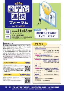 | 会場 | 日本大学工学部 50周年記念館(ハットNE) 3階大講堂 郡山市田村町徳定字中河原1番地 |